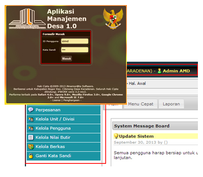 Aplikasi Manajamen Desa (AMD) adalah sekumpulan subsistem yang saling berhubungan, membentuk satu kesatuan saling berinteraksi dan bekerjasama antar bagian satu dengan yang lainnya untuk melakukan fungsi pengolahan data, menerima masukan (input) berupa data, kemudian mengolahnya (Processing) dan mengeluarkan keluaran (output) berupa informasi untuk mendukung kegiatan operasional dan managerial dalam sistem data di desa/ kelurahan. Lengkap dan Memenuhi Kebutuhan, AMD bekerja dengan cara mengolah database kependudukan lebih dari 30 kebutuhan administrasi desa/kelurahan karena dilengkapi oleh basis data dan bagian pengolah yang mampu mengolah data dengan baik untuk memenuhi segala kebutuhan informasi secara mudah sehingga memudahkan monitoring terhadap jalannya pemerintahan desa/kelurahan. Produk ini digunakan oleh kementrian Desat Tertinggal untuk dimanfaatkan bagi manajemen kantor desa |