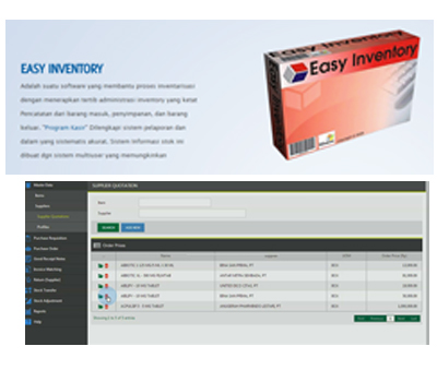 Sistem Informasi untuk Inventory adalah suatu sistem software yang akan membantu proses operasional perusahaan dengan menerapkan tertib administrasi Inventory mulai dari Pencatatan dari barang masuk, penyimpanan, sampai dengan barang keluar. Sistem Informasi Inventory ini dibuat dengan sistem multi user yang memungkinkan pengaksesan sistem informasi oleh beberapa user yang berbeda dalam suatu waktu. Sistem ini dirancang dengan sistem keamanan yang handal yang mana setiap level user diset dalam ruang lingkup pekerjaan yang berbeda berdasar urutan otorisasi. Paket ini tersedia untuk purusahaan yang punya gudang lebih dari satu, menu yang tersedia menu stok, barang masuk, Konsinyasi Retur barang masuk, transfer barang antar lokasi, Hutang dan Piutang, laporan-laporan. Produk ini dimanfaatkan oleh salah satu perusahaan Ground handling besar di Indonesiua yaitu PT. Gapura Angkasa untuk menajemen pergudangannya. |